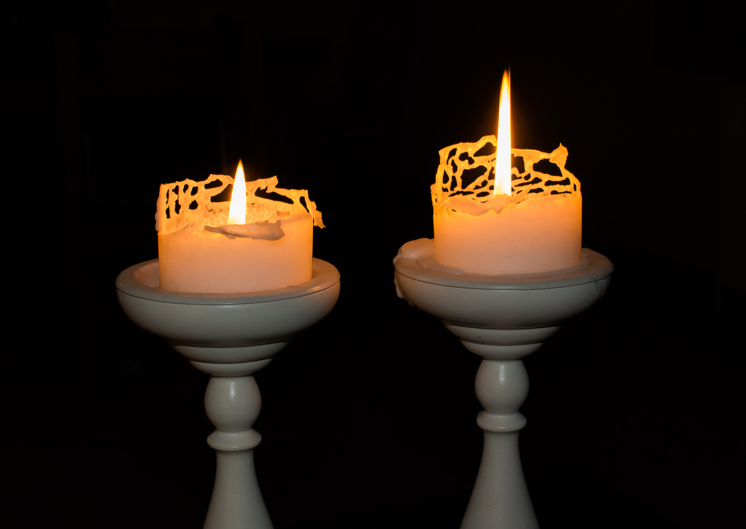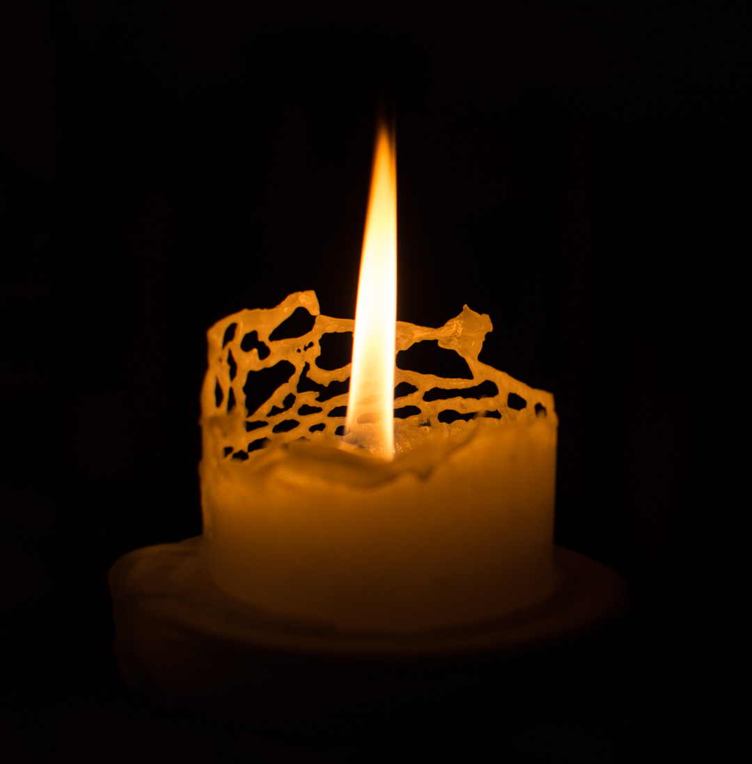 Scherenschnittartige Muster bildeten diese Kerzen beim Abbrennen aus, und luden zum Experimentieren ein. Hier sind ein paar der Resultate zu sehen: